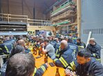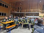 Es nahmen insgesamt 77 Feuerwehrkameraden mit 11 Fahrzeugen teil. Nach dem erfolgreichen Abarbeiten des Szenarios lud der Hausherr noch zur Nachbesprechung in die Abbundhalle der Firma Huber Bau ein.